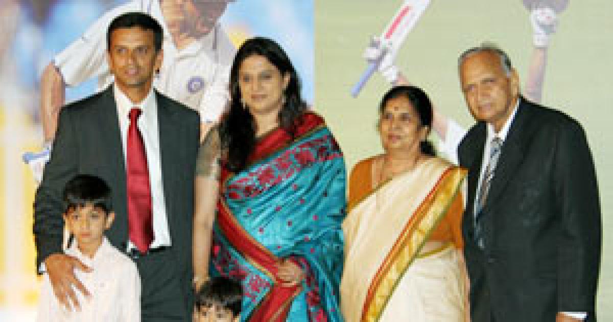 Image: File picture of Rahul Dravid with his wife, children and parents