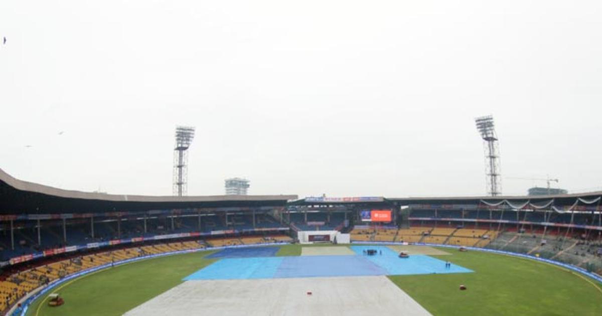Following a light drizzle in the morning, the start of play was pushed back to 1030 IST but before the teams could get back onto the field at the M Chinnaswamy stadium, the heavens opened up again.