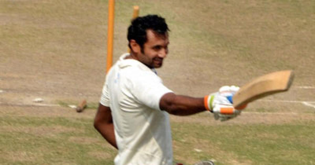 Image: Himachal Pradesh player Paresh Dogra celebrates his double century against Tripura during their Ranji trophy match in Agartala.
