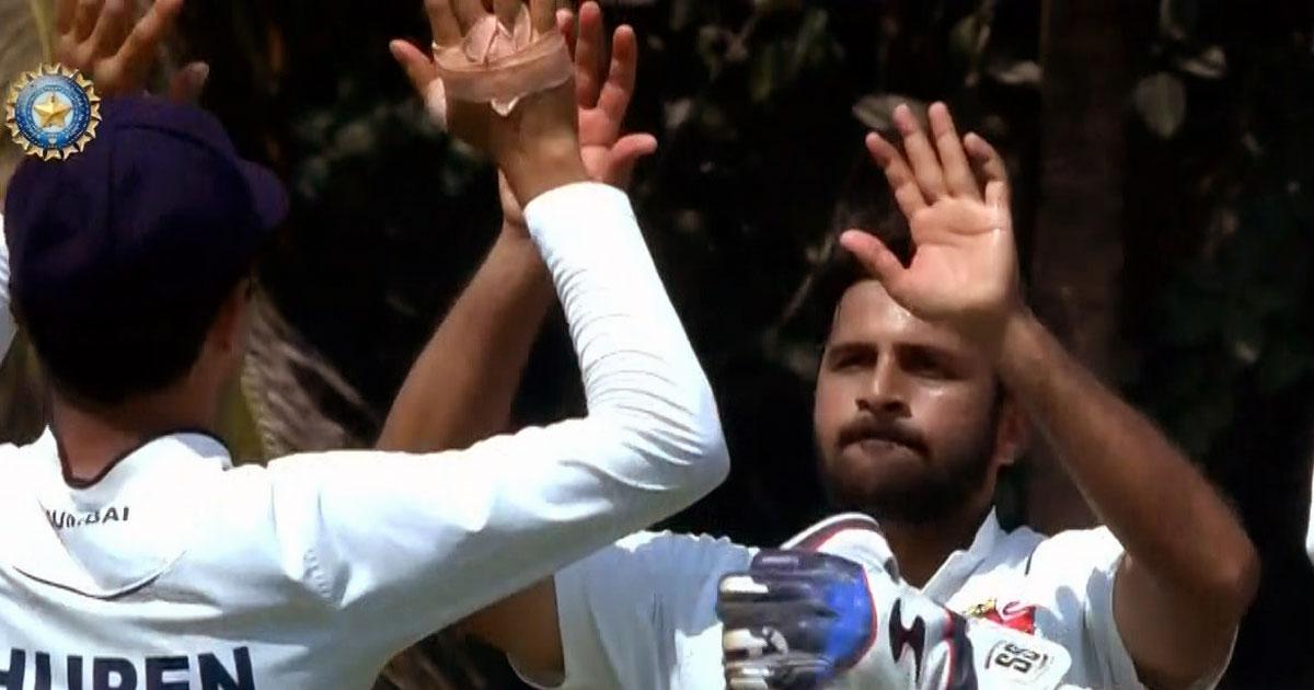 Musheer Khan (24 not out) and nightwatchman Mohit Avasthi (1) were at the crease with Mumbai losing openers Prithvi Shaw (5) and Bhupen Lalwani (15).