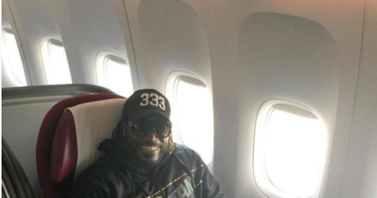Image: An excited Chris Gayle on his flight back home