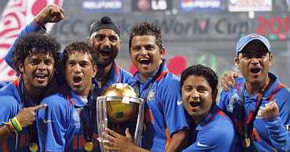 Image: Indian team celebrates after winning the ICC World Cup against Sri Lanka in Mumbai in 2011