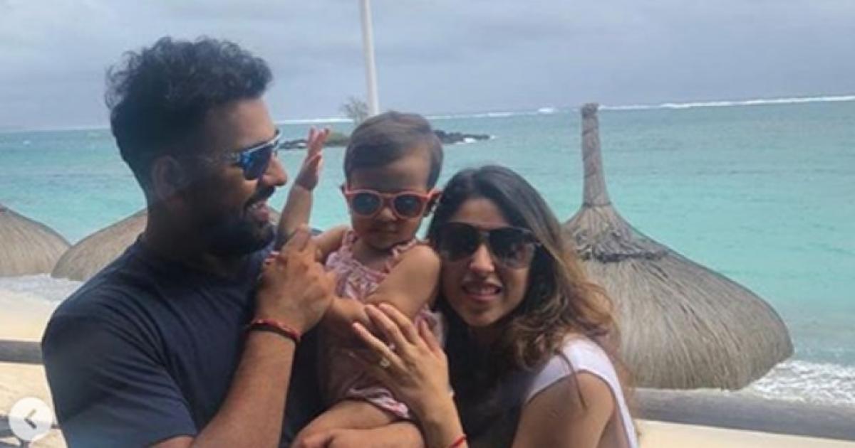 In one of the pictures, Rohit along with his Ritika and family don a t-shirt that has 'Samaira’s first' written on it.