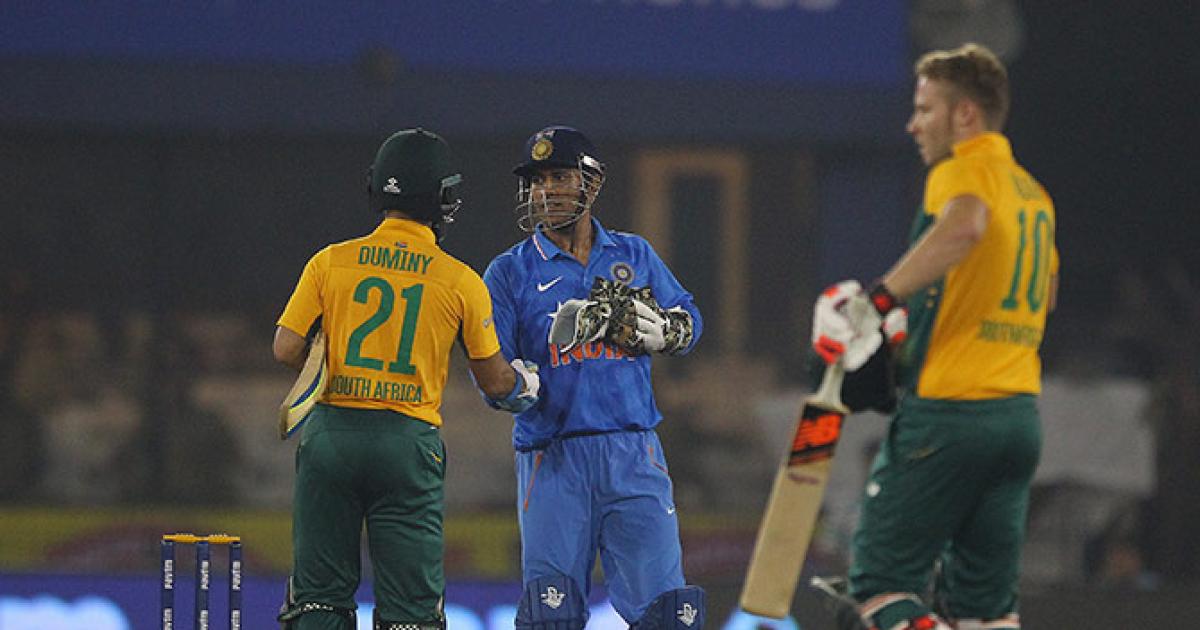 After the wickets of Hashim Amla (2), Faf du Plessis (16) and A B de Villers (19), Jean Paul Duminy (30 not out) and Farhaan Behardien (11) made sure that their side stayed in the chase. In the end David Miller (10 not out) stayed with Duminy to get the win.