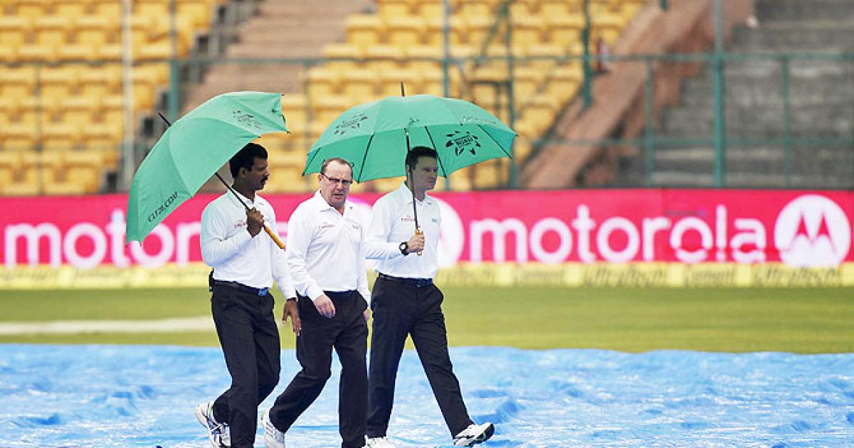 The second Test between India and South Africa ended in a damp draw after cyclonic rains and a wet outfield ensured not a single ball could be bowled for a fourth successive day at Bengaluru's M Chinnaswamy Stadium on Wednesday.