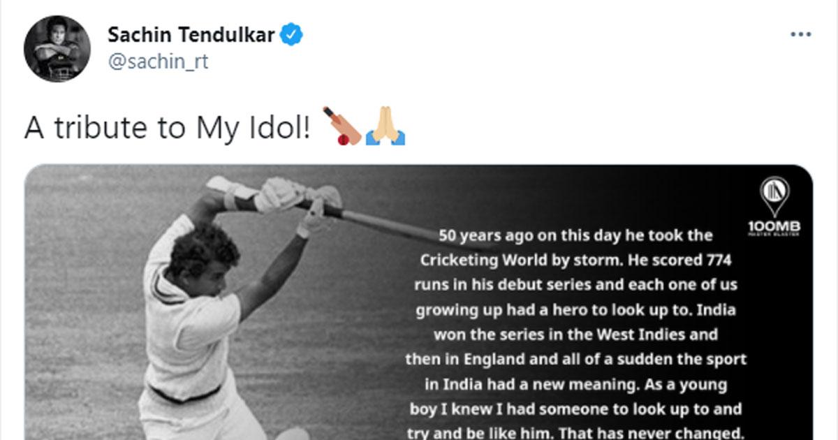 "50 years ago on this day he took the Cricketing World by storm. He scored 774 runs in his debut series and each one of us growing up had a hero to look up to," Tendulkar tweeted.