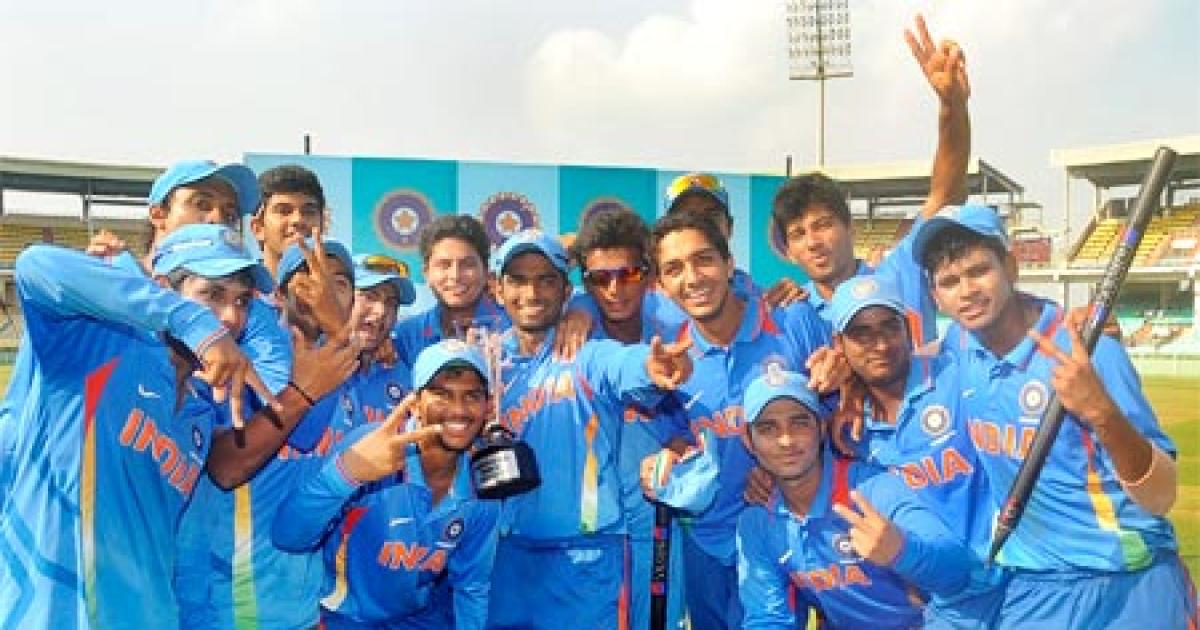 Image: The India Under-19 team celebrate after winning the Quadrangular Series in Visakhapatnam.