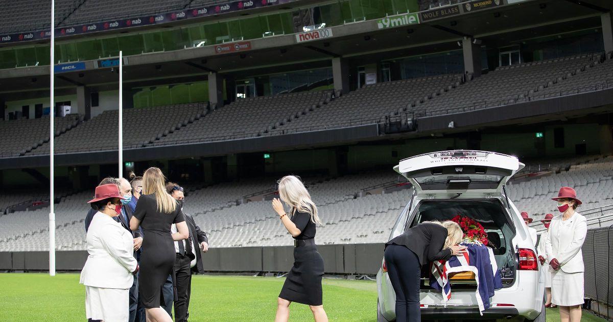A hearse carrying Jones’s handmade Indian coffin and decorated with a floral arrangement of '324', his Australian Test cap number, drove a lap around the empty MCG as Elton John's "Rocket Man" played over loudspeakers.