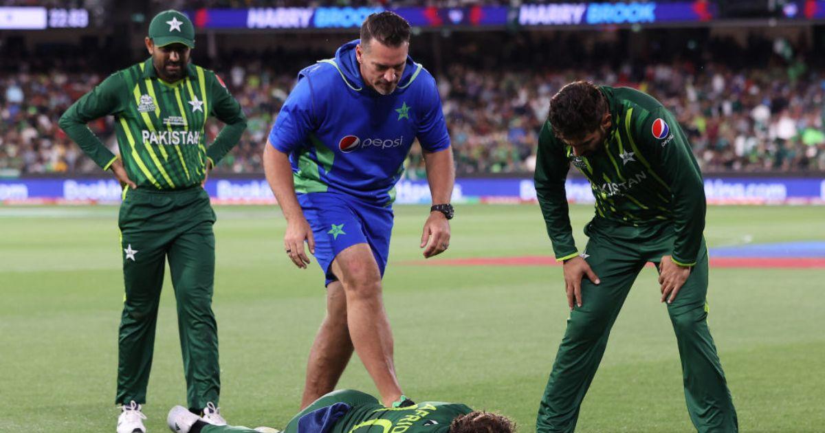The injury resurfaced during the 13th over of England's chase while he took a running catch to dismiss batter Harry Brook. He was helped off the field by the physio and doctor. Shaheen returned and tried to bowl the remainder of his spell, but could not carry on after bowling one ball. He could bowl only 2.1 overs out of his four overs.