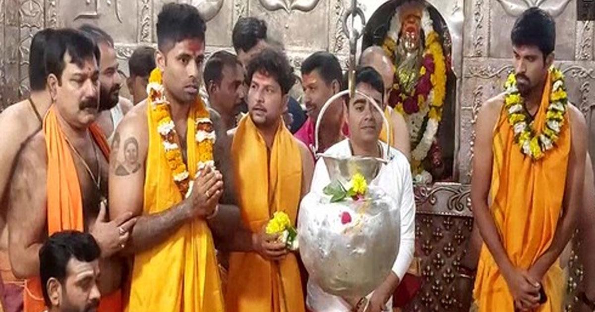 Suryakumar Yadav, Kuldeep Yadav and Washington Sundar along with members of the Indian team's support staff offered prayers at the Shree Mahakaleshwar temple in Ujjain early on Monday morning.