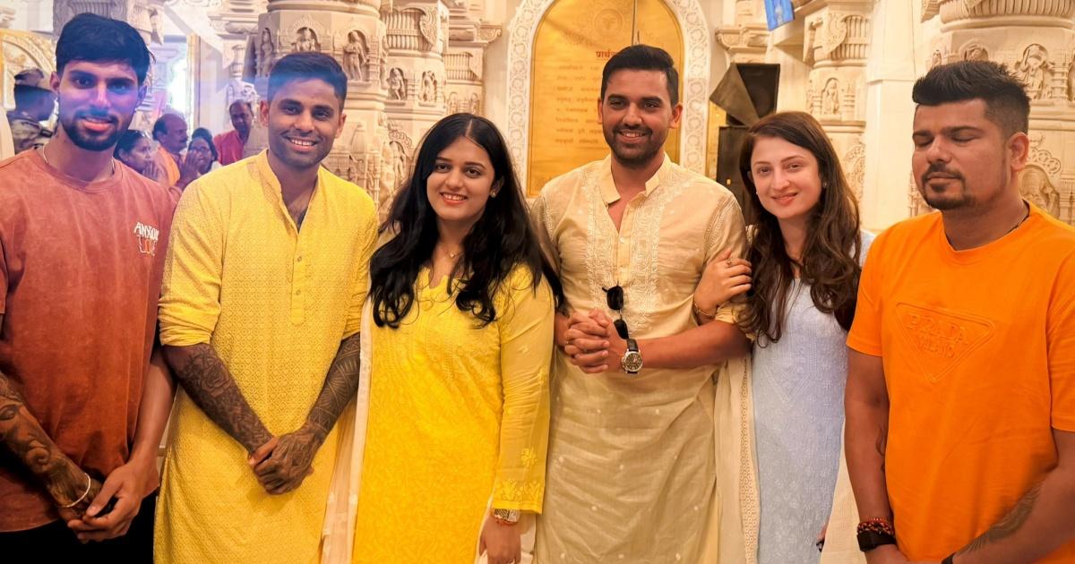 Suryakumar and Devisha were joined by fellow Mumbai Indians Tilak Verma, Karn Sharma and Deepak Chahar along with his wife Jaya for the temple visit.