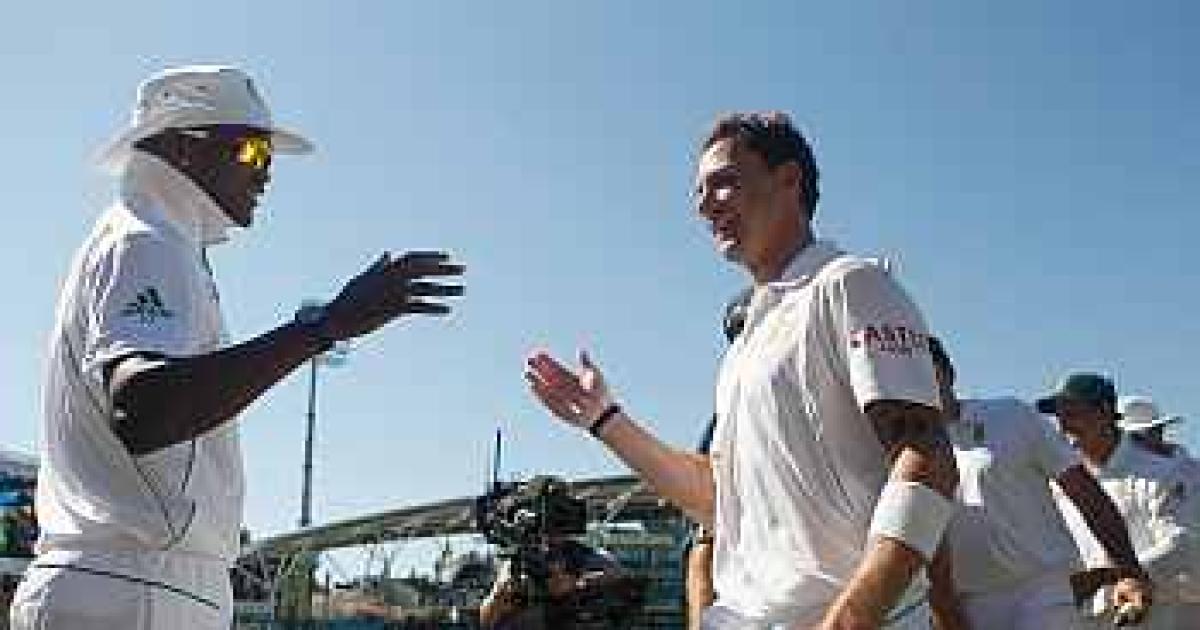 Steyn then claimed the prized wicket of Bell with his second delivery with the new ball, as he edged to the reliable Kallis at second slip. He added the scalps of Stuart Broad, caught behind after a review, and Graeme Swann.