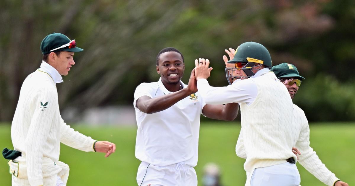 Pace spearhead Kagiso Rabada grabbed three wickets and Marco Jansen two, the pair rattling through New Zealand's top order after South Africa were bowled out before tea.