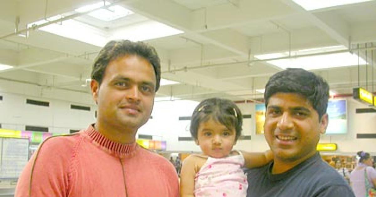'This is a picture of my daughter Maanya and myself with Dinesh Mongia. This was taken in July 2005 at the luggage carousel at Delhi airport,' writes Abhishek.
