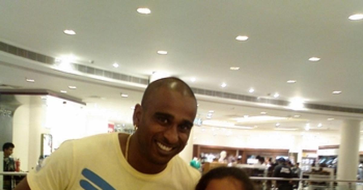 'Here is a photo of me with English cricket star Dimitri Mascarenhas. I spotted him in a shopping mall in Hyderabad.