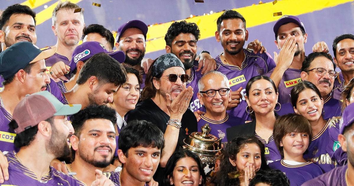 He was accompanied at the final by his wife Gauri Khan and children Aryan, Suhana, and AbRam, including KKR, co-owners Juhi Chawla and her husband Jay Mehta.