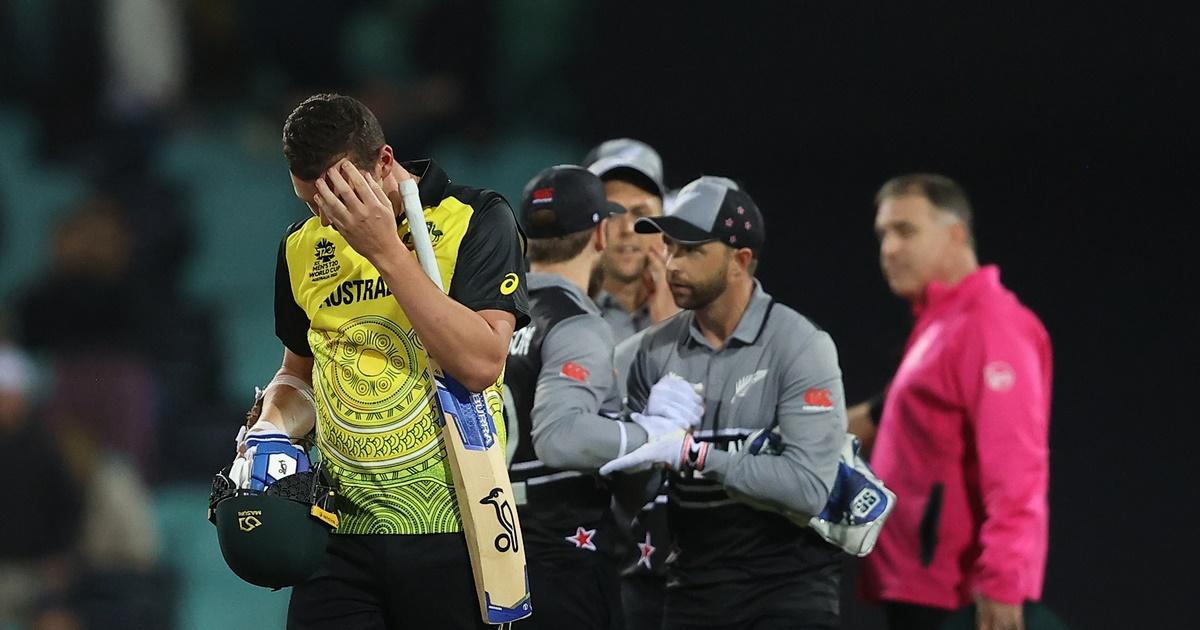 Mitchell Santner (3-31) took some early punishment but had Australia skipper Aaron Finch caught in the covers for 13 before Southee got his second wicket when Mitch Marsh was caught in the deep by Neesham for 16 before the end of the powerplay.