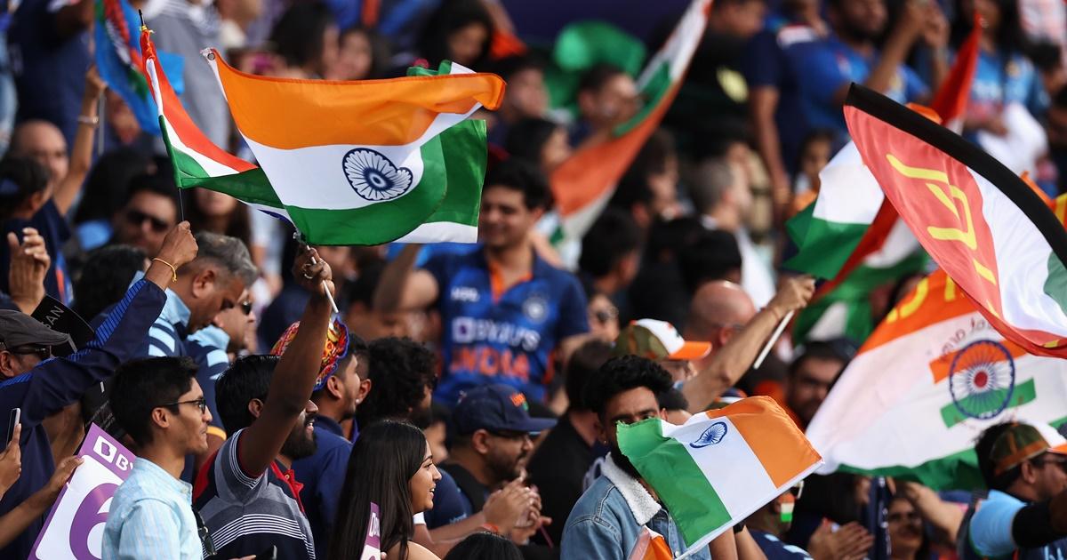 IMAGE: Indian fans celebrate a boundary during the T20 World Cup game against The Netherlands at the Sydney Cricket Ground. Photograph: Cameron Spencer/Getty Images