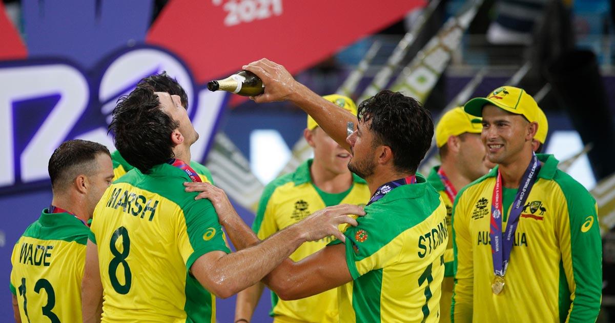 Scenes from the post triumph celebrations after Australia won its first T20 World Cup championship at the Dubai international cricket stadium on Sunday.