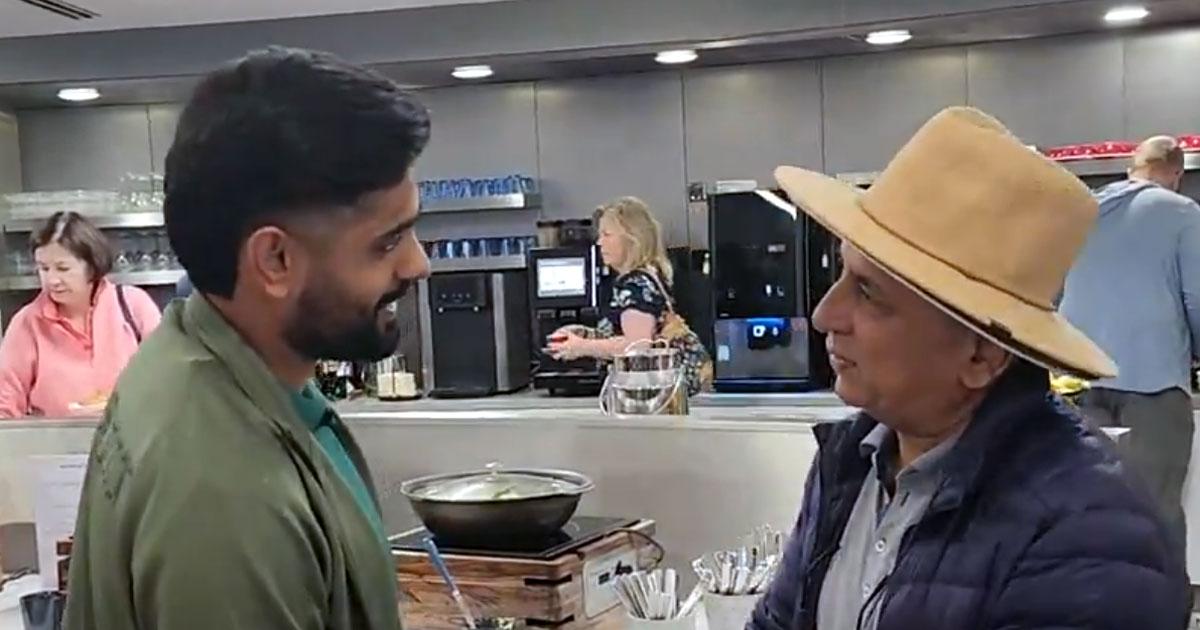 Babar Azam caught up with batting great Sunil Gavaskar ahead of the T20 World Cup in the US and West Indies in what appears to be the breakfast room at a hotel.