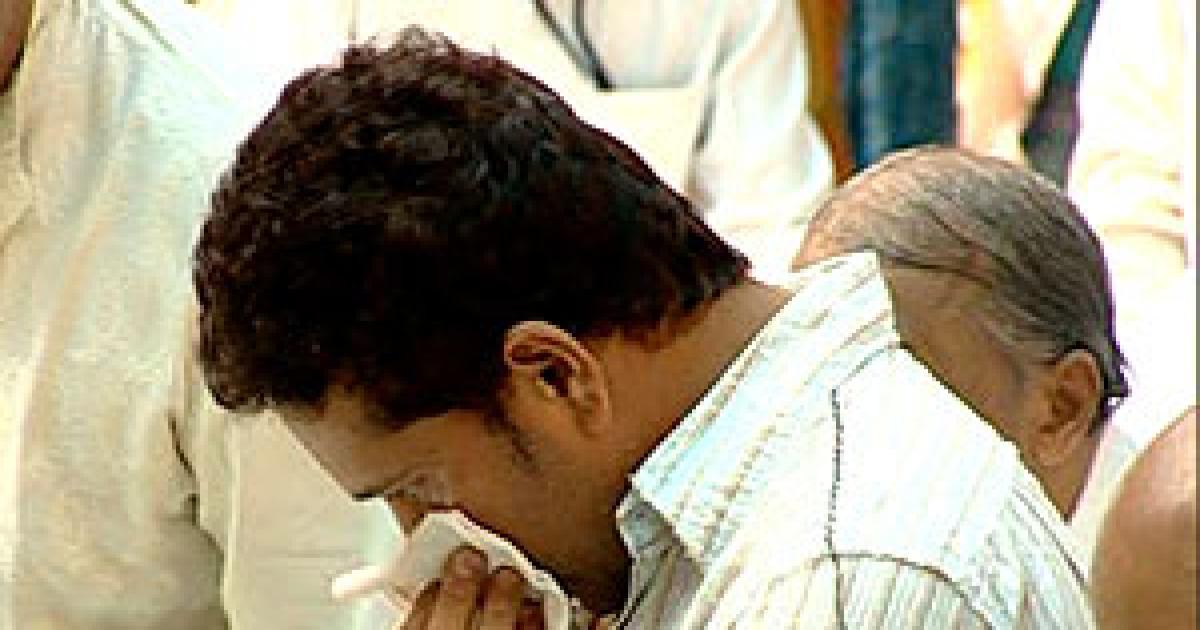 The iconic batsman was accompanied by his wife Anjali during his visit to the Sai Kulwant Hall in Prashanti Nilayam in Puttaparthi. The couple was moved to tears upon arriving at the hall where they sat for a while before driving off.