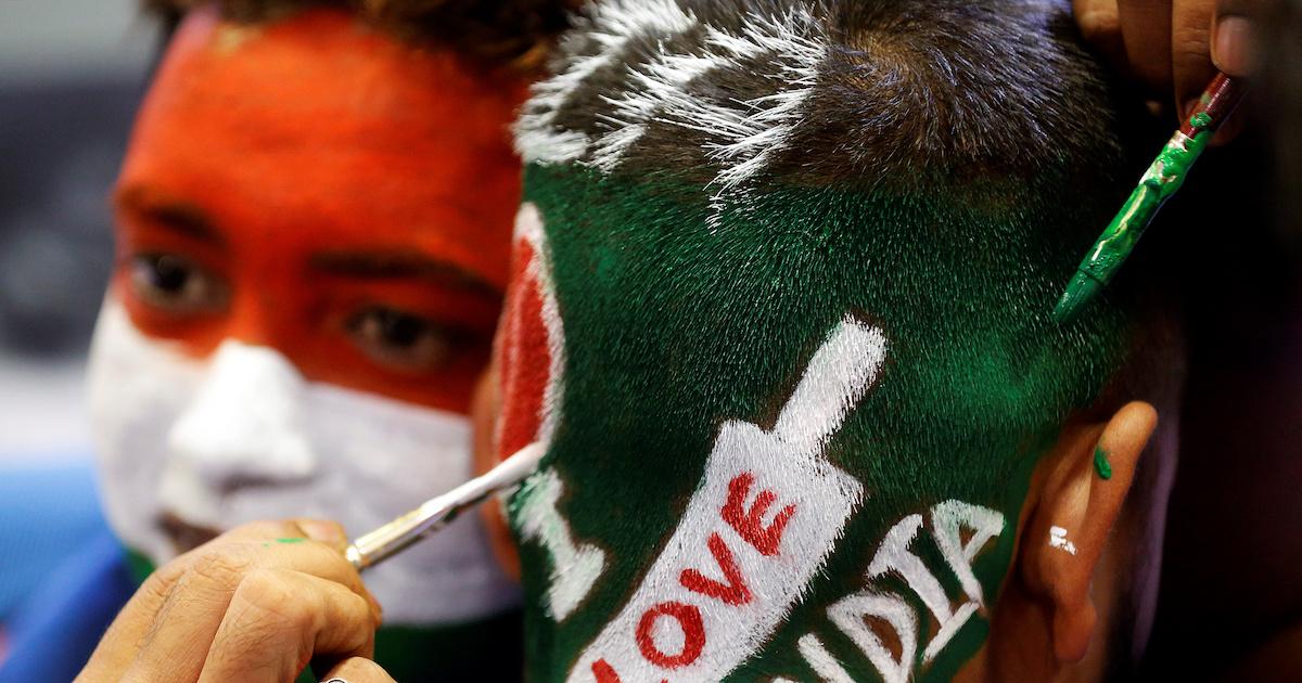 His body painted in tri-colour with Dhoni and jersey number 7 painted in blue on his back, it is impossible to miss this cricket fan from Chandigarh.