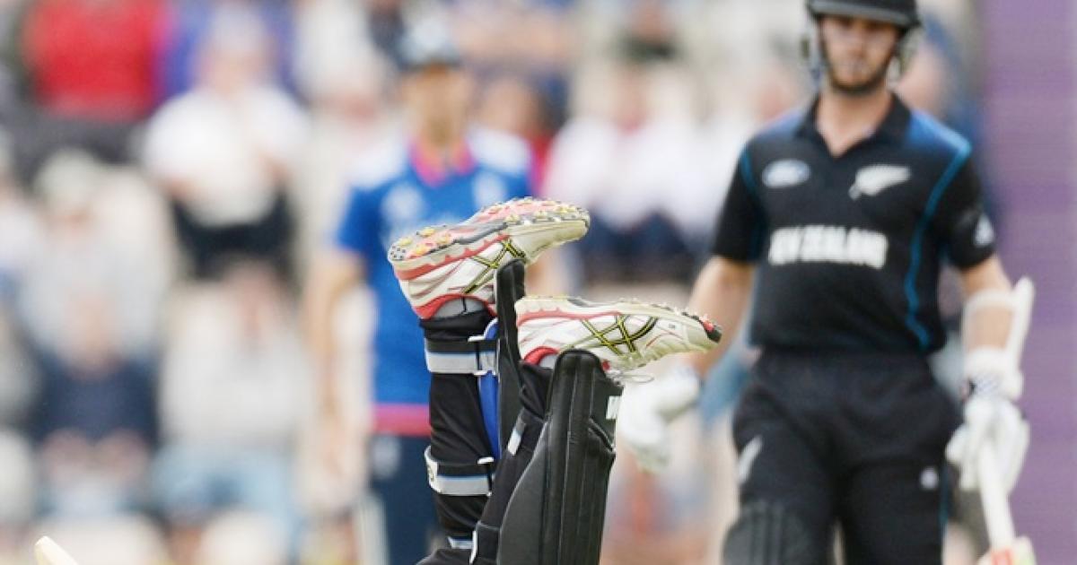 New Zealand's Ross Taylor falls after being struck by the ball. Photograph: Philip Brown/Reuters