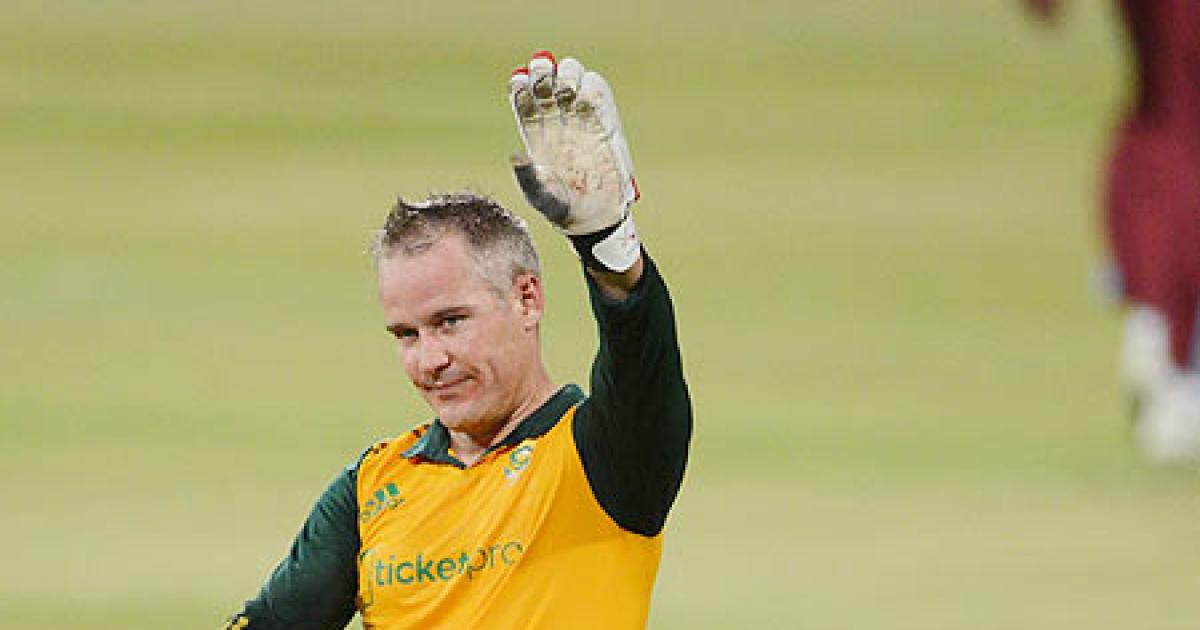 Image: Morne van Wyk of South Africa celebrates his century during the 3rd T20 International against West Indies at Sahara Stadium Kingsmead in Durban on Wednesday