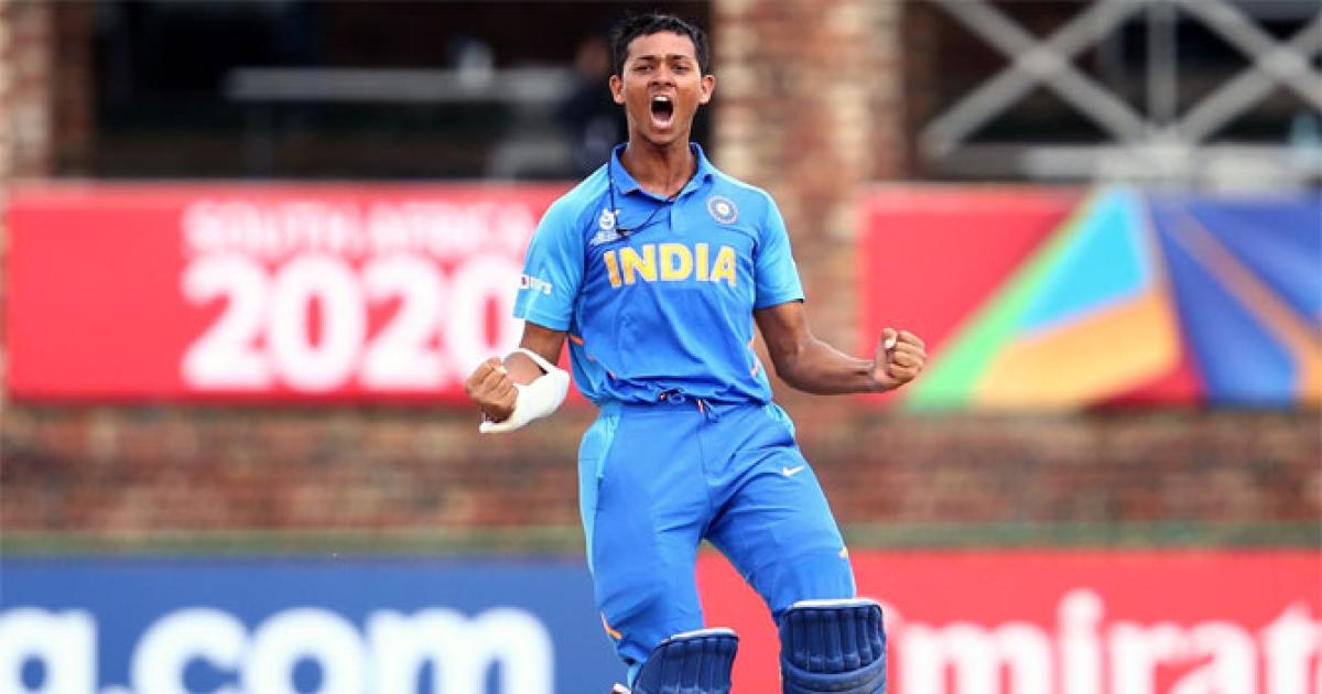 Yashasvi Jaiswal scores 105 off 113 balls, Kartik Tyagi takes 2 for 32 as India win by 10 wkts in 35.2 overs.