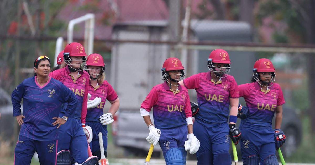 Theertha Satish and UAE captain Esha Oza had a solid beginning, putting up a score of 45 for no loss in the first six overs. From that point, they began to pick up the pace, reaching 90 runs by the first half of the innings. Oza brought up her half-century during the 11th over, while Satish followed suit in the 12th.