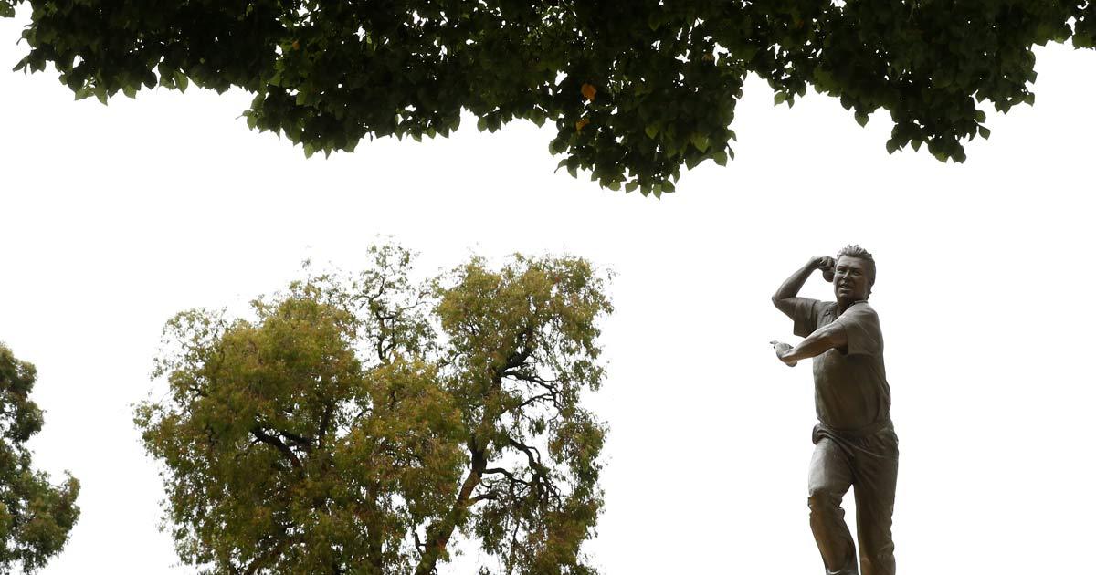 Warne's life size statue, in his iconic bowling action, stands tall outside the MCG.