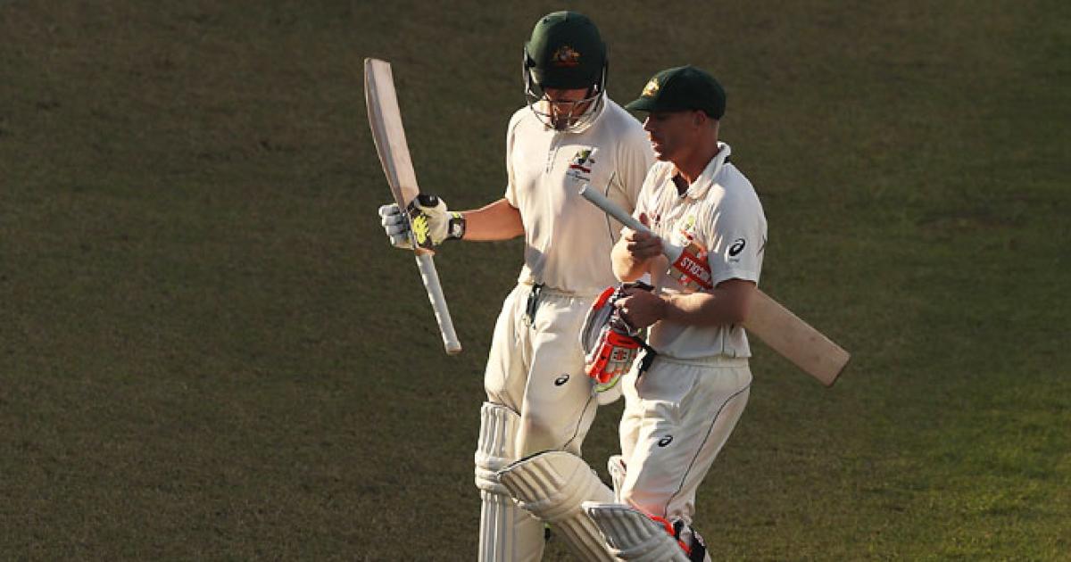David Warner and Steve Smith survived Bangladesh's relentless spin onslaught to keep Australia alive in the opening Test against Bangladesh on Tuesday.
