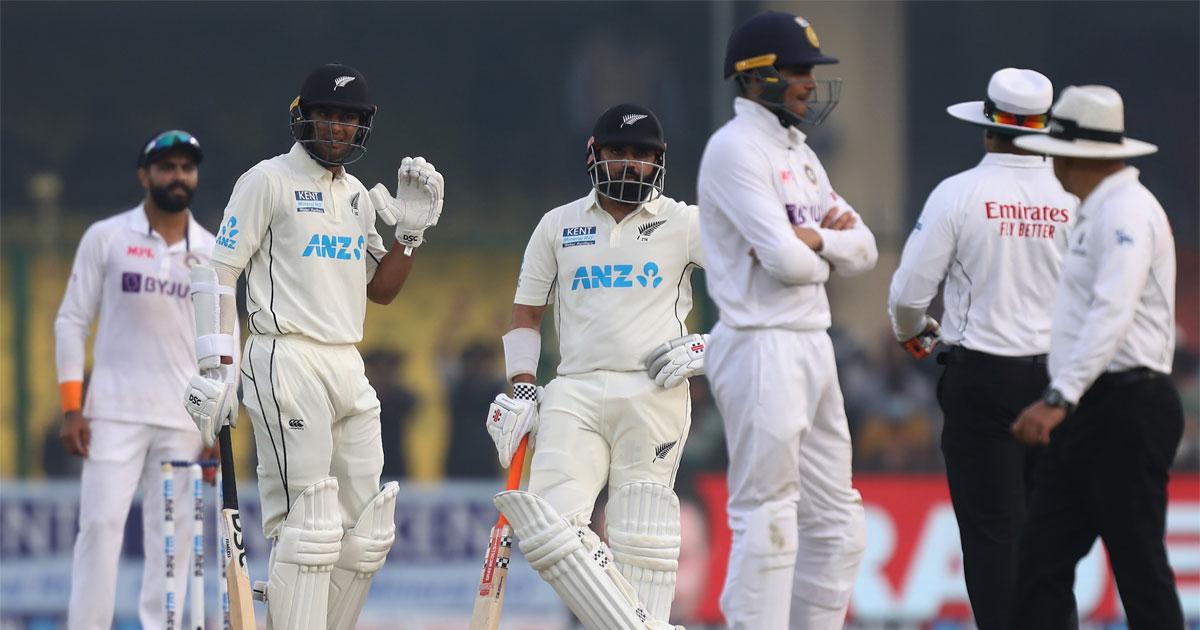 Debutant Ravindra, 22, faced 91 balls for his 18 not out, while Patel survived 23 balls to be unbeaten on two. Chasing a target of 284 for victory on the final day, New Zealand slumped to 155/9 with nearly nine overs to go and an upbeat India was pressing for victory in fading light.