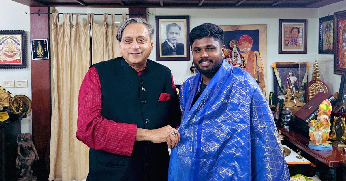 Congress MP Shashi Tharoor, a long time fan of Samson, welcomed the batting star on his arrival in Thiruvananthapuram.