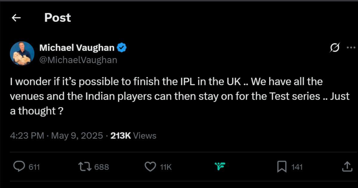 'I wonder if it's possible to finish the IPL in the UK .. We have all the venues and the Indian players can then stay on for the Test series .. Just a thought ?' he posted on X.