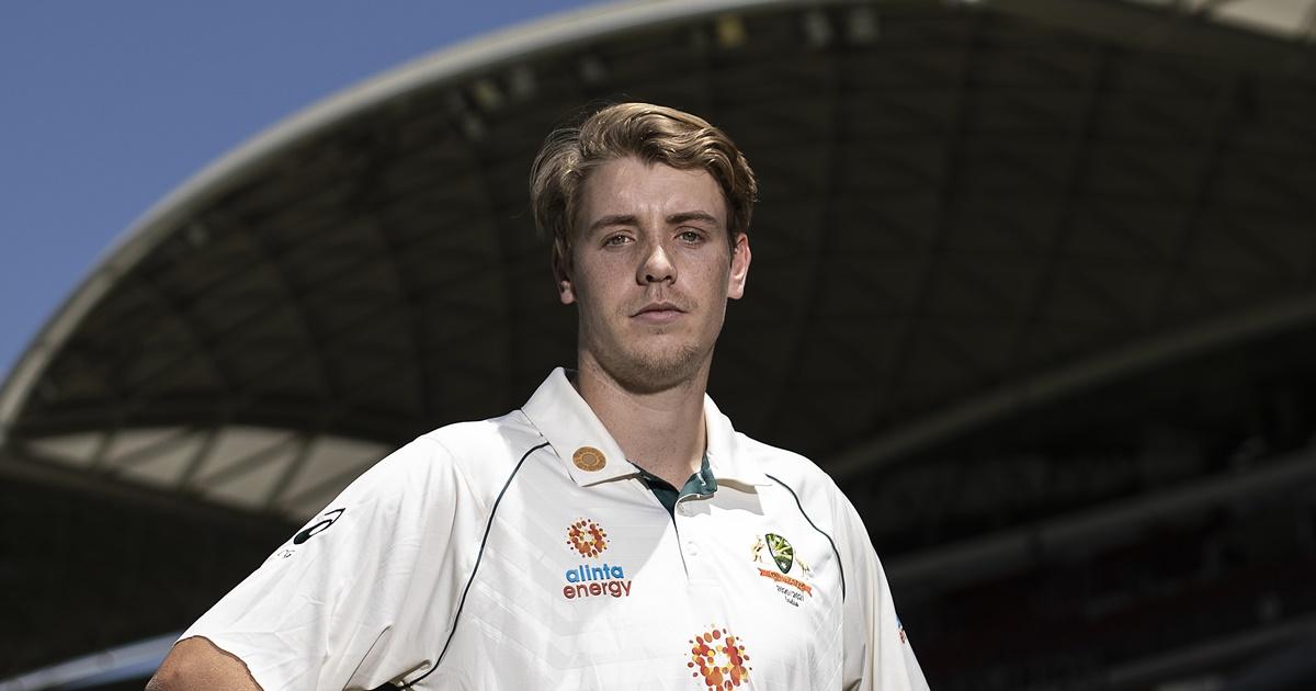 IMAGE: Cameron Green poses before an Australian nets session at Adelaide Oval. Photograph:  Ryan Pierse/Getty Images