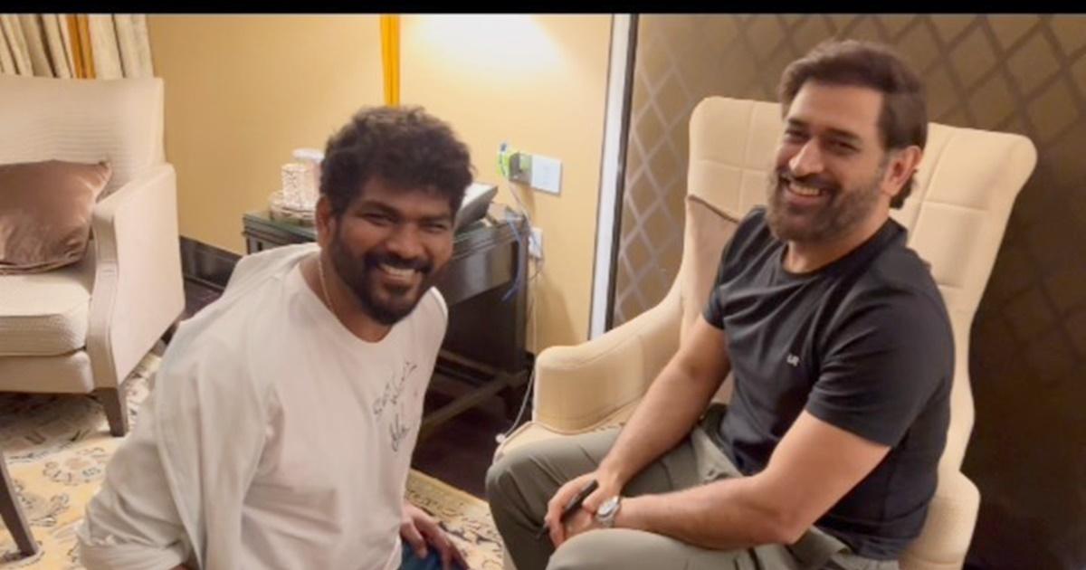 Vignesh Shivan's caption read, 'With my Hero my captain, my role model! It's always emotional & overwhelming to be next to this pure Soul! @mahi7781 A man whom I love soooo much and look up to every other day! I feel soooo happy to see The Happiness in my face Every-time I see him...So happy to see him make films in Tamil Industry!