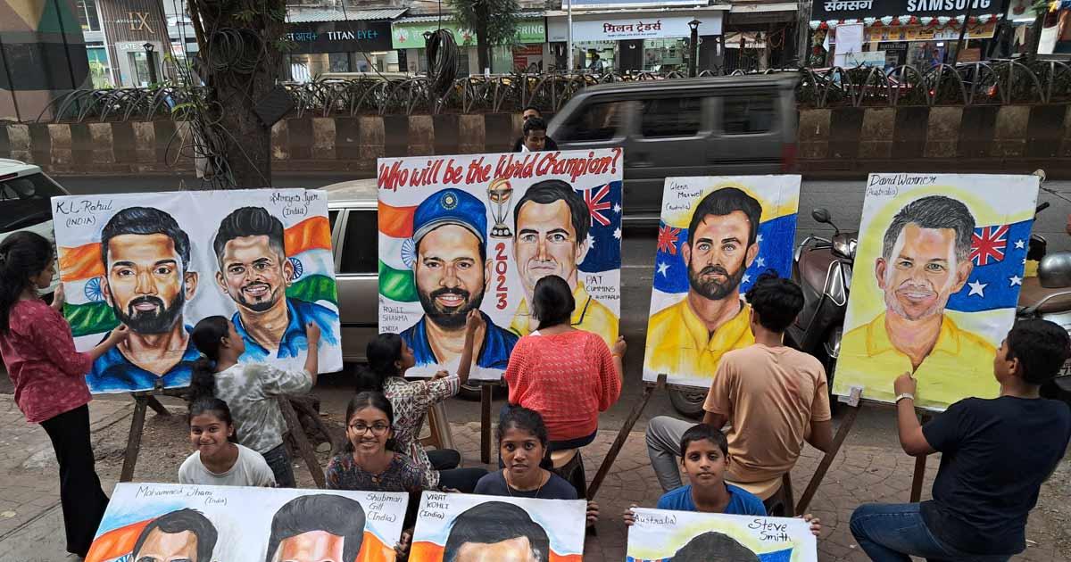 Art students at the Gurukul in Mumbai celebrate the World Cup 2023 final.