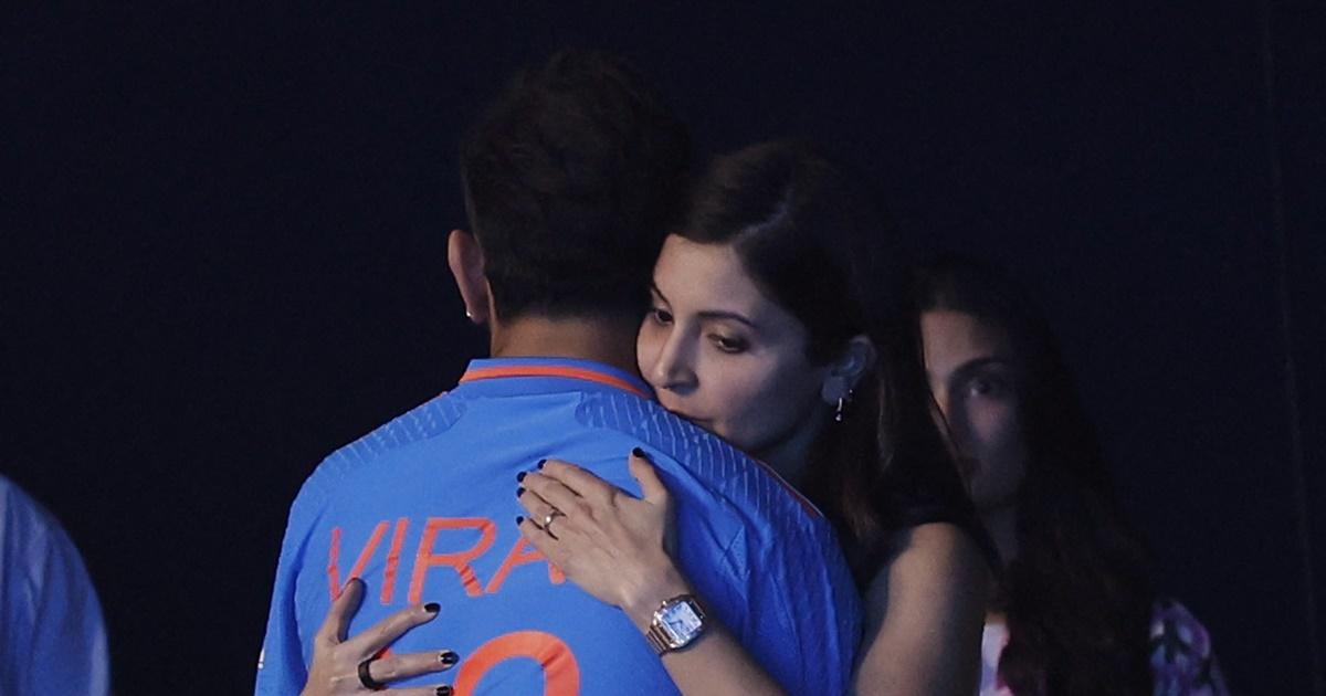 IMAGE: Virat Kohli and Anushka Sharma embrace after India lost the World Cup 2023 final. span class="credit">Photograph: Adnan Abidi/Reuters