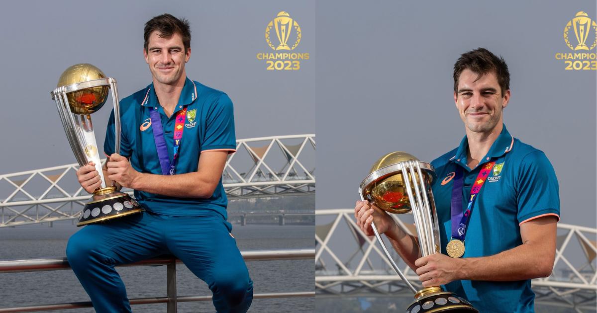 'Iconic. Champion skipper @patcummins30's memorable day out with his prized possession at the Atal Pedestrian Bridge, Sabarmati Riverfront #CWC23,' ICC posted pics on X.