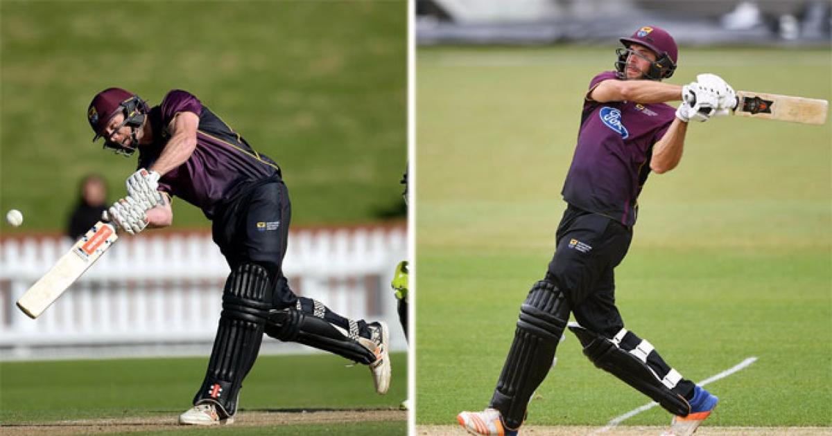 Northern Districts batsmen Joe Carter and Brett Hampton belted six sixes -- two of which were hit off no balls -- a four and a single during the first class match at Hamilton's Seddon Park.