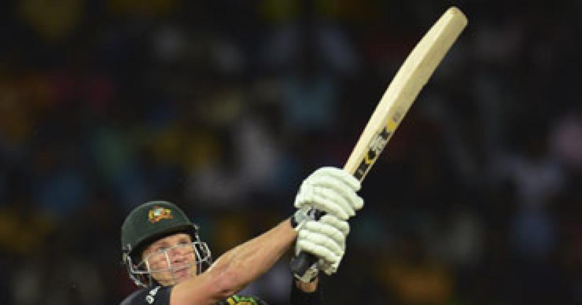 Photo: Australia's Shane Watson hits a six during the ICC World Twenty20 Super 8 match against India at the R Premadasa Stadium in Colombo on Friday (REUTERS/Philip Brown)