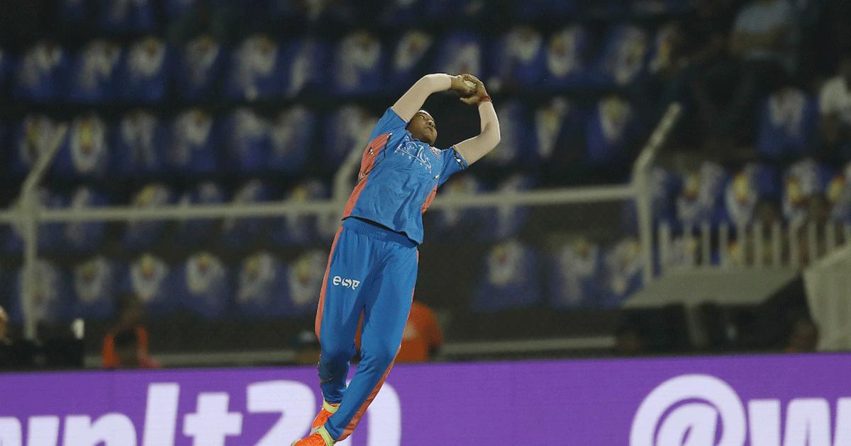She fell to the ground, but held on the ball tightly, before exulting in celebrating one of the finest catches of the WPL.