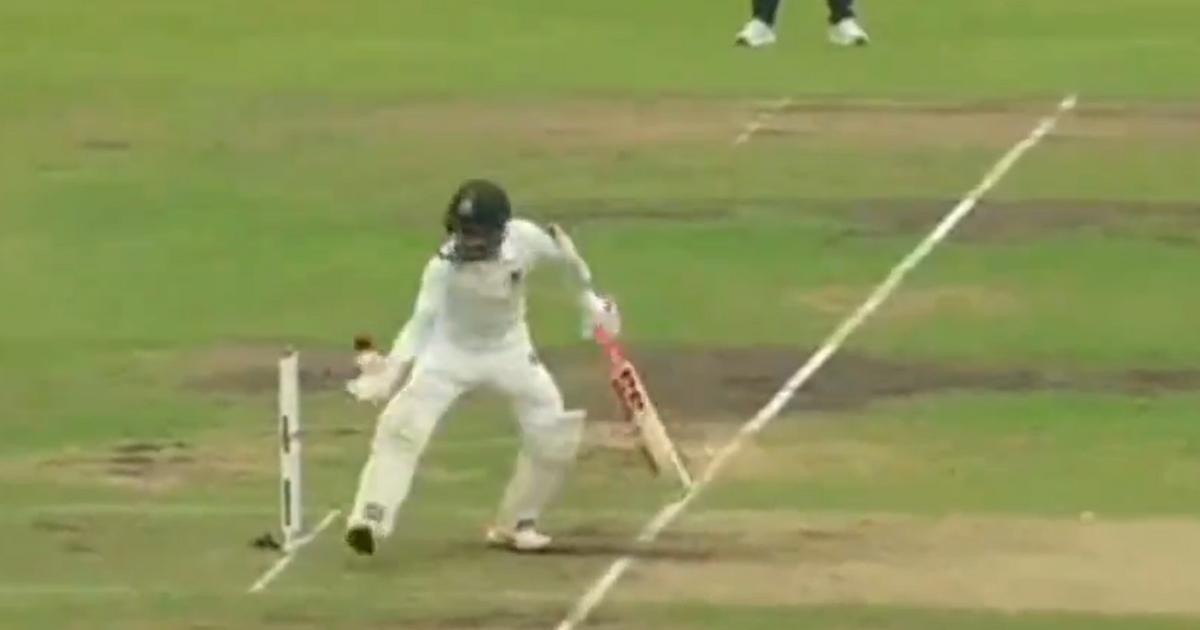 Mushfiqur was given out obstructing the field in the 41st over of play on Day 1 of the 2nd Test, leaving his side five down.