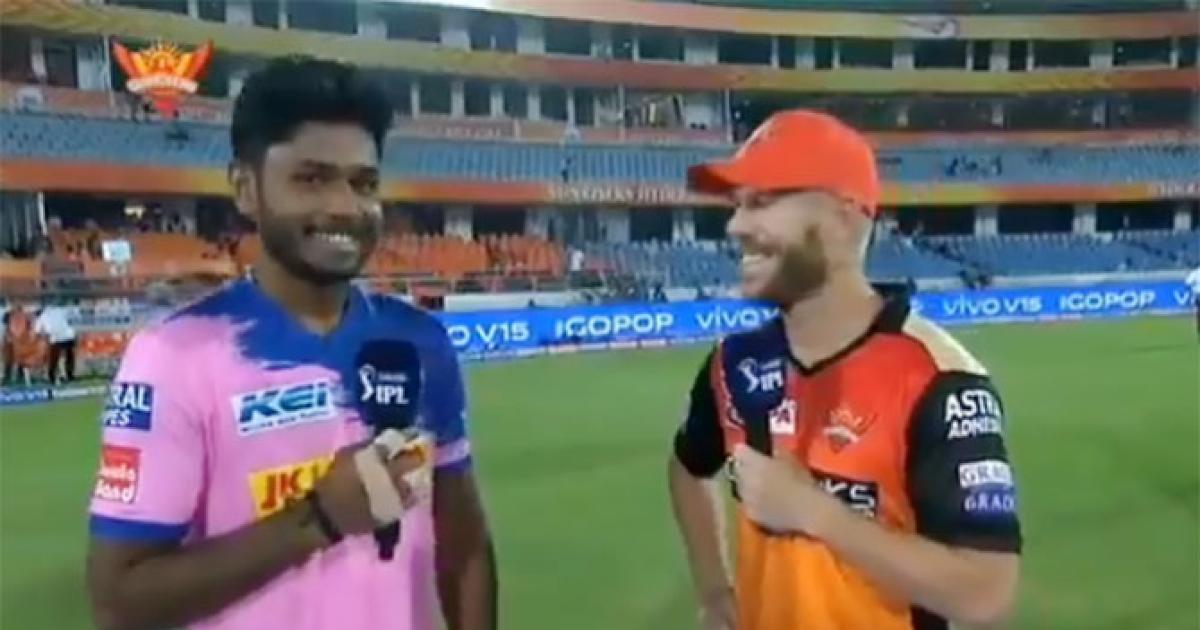 "You destroyed my day. My 100 was not enough because of the way you batted. The way you started the innings we lost the game in the Powerplay. We needed some 250 on the board with someone like you in the opposition. It was special," Samson told Warner.