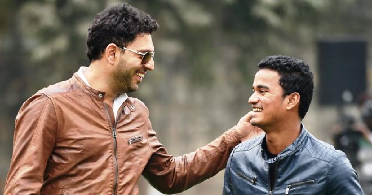 The 34-year-old Yuvraj, on a comeback trail into the national team, indulged in a bit of cricket with children who had come to get a glimpse of the star player who was accompanied by young spinner Pawan Negi.