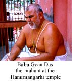 "We are not going to destroy any other mosques. If that was our intention, we would have destroyed the Jama Masjid. If the Muslims want to build a mosque outside Ayodhya, even the sadhus will be willing to do Kar Seva. The Ram Mandir is the sadhus's movement. Some 76 battles have been fought for the Ram Janambhoomi, we destroyed the masjid at the 77th attempt. The mandir will definitely be built. Irrespective of the court, or the political compulsions. It takes time to build, than to destroy..." says Ramchandra Paramhans. Paramhans -- known for his active involvement in the VHP movement and his support for the BJP, especially during election campaigns -- does not mince words about his role. How he has been invited by almost all prime ministers to Delhi by "aeroplane." How political bigwigs call on him. And how sadhus need to be involved in politics to ensure that good people come into governance. Yet, the sadhu from Bihar -- and before that from Multan in 1947 -- does not fail to add smartly: "If there was no mandir, I wouldn't have a mission -- so I am doing this for my personal satisfaction too." With two big VHP stickers on his door, Paramhans takes time off to direct every incoming devotee to the lunch hall. Screaming across the courtyard in a powerful voice to announce their arrival to the cooks inside. Another assistant is asked to organise samosas and ladoos for a politician who was to visit him in the evening. "If you say that the mandir is being used for political mileage, then those who are opposing it are also doing for their propaganda. If the BJP gets a majority then the temple will be built. Moreover, the BJP has never had the temple on its agenda. It is for us to follow this and make it come through. Nothing can stop this from happening. Not even Vajpayee..." continues Paramhans. Further from the Digambar akhara is the Nirmohi akhara. Run down, with three sadhus at the entrance -- the overgrown courtyard within leads to the verandah where snores Mahant Jaggannath. Deep in his afternoon siesta, the pot-bellied mahant is a light sleeper and sits up on his spartan bed. A rickety fan, a pack of Panama Filters and a Philips radio, the few signs of modernity surrounding him. The mahant, who joined the akhara in 1963 is deeply disturbed by the sidelining of his akhara in the Ram Janambhoomi disupute. Jaggannath says the disputed land belongs to the Nirmohi akhara, and hence the responsibility of building the temple rests on them. "It belongs to us, but the money for the mandir is being collected by Paramhans and company," he says and stays clear of making any comments about Katiyar or the dilution of the BJP's Hindutva policy. The mahant also reveals that his akhara had fallen on rough times and that was a reason for its reduced membership currently. "The VHP has projected us as enemies of Hindus. In fact we have been fighting for the mandir for the last 114 years. The VHP/BJP picked it up from us and the Ram Mandir made it possible for the BJP to reach power. It is not possible for the BJP to win or survive without the Mandir." Seven years after the demolition, the Muslims in Ayodhya-Faizabad seem almost assured that the Mandir-Masjid issue will not see a solution in the near future. Some, like their Hindu counterparts, reveal that they are tired of the controversy and do not think much about the likely outcome. That the business of living is more important than a temple or a mosque. The 4,000 Muslims in Faizabad predominantly work as labourers and in small businesses. Syed Iqlag Ahmed Latifi, imam of the 400-year-old Alamgiri Masjid at the Ayodhya-Faizabad border, is certain the Hindus are more upset with the BJP than the Muslims. "The BJP had promised them a temple and have failed to fulfill it," says the imam, who lives near an old Muslim graveyard, a stone's throw from another cordoned gate. "The Mandir has not been an issue in this election because anything that continues for a long period of time loses its relevance. I don't think building a temple is all that easy. Destroying a structure is easier than building one. Power is more important than a temple, the BJP knows that. The Mandir-Masjid case has been dragging in the courts for 40, 45 years. If they did find any proof of the existence of a mandir, it wouldn't have continued so long. If the temple is built, on what issue will the BJP survive on?" laughs the imam. The destruction of the Babri Masjid and the controversy over the site is a watershed in Indian politics, but the twin cities of Ayodhya and Faizabad have come a long way since. Photographs: A Ganesh Nadar