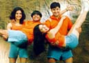 The story takes off when Raju happens upon Murthy's house and takes Shanthi and Siddharth out for a ride in their authoritarian father's vintage car. Suzy (Prema) joins this menage and the foursome find themselves caught up in an odd set of adventures, finally getting kidnapped after a silly college rock show and fashion extravaganza. The rest of the plot deals with how they find their way out of this mess. "The pace is not fast or frantic, just pleasant and enjoyable," says Srinivas. "The cultural chutney of Bangalore flavours the film in many little ways. You can hear snatches of Telugu, Tamil, Hindi, Urdu, even German, French, Italian, Spanish, Chinese and gibberish! The usual Kannada film completely ignores this cosmopolitan character of Bangalore, and you are riddled with weeping women, marital troubles and missing thaalis ( mangalsutras.) He has written the story, inspired by two incidents -- the kidnapping of a rich businessman by young thugs from Uttar Pradesh who were attracted by Bangalore's reputation as a fast-growing city with rich men and relaxed cops, and the case of four city girls running away for a week with a man who promised to help them fulfil their ambitions. "I thought these incidents were symptomatic of the rapid pace at which Bangalore is growing, and the sudden influx of money and immigrant population, both of which have led to abrupt changes in lifestyle and attitudes," says Srinivas. The result of all that is mainstream entertainment film, meant to give viewers a small glimpse into the Bangalore of today.