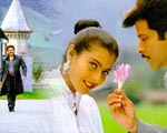 Then of course one has to suffer a few villains like Shakti Kapoor and Parmeet Sethi. The latter plays the same role he performed in Dilwale Dulhaniya Le Jaayenge -- an illiterate north Indian. He lusts after Megha and, to aid his cause, almost snuffs her hubby twice in the film. Sadhu Meher makes a rare appearance as the old retainer. Though it isn't much of a role, it is still pleasing to see this fine actor after so many years. The most annoying characters in the film are Johnny Lever and Satish Kaushik, as Sunny Goel and a German. They are intended to provide some respite between the emotional scenes, but they have your teeth on edge in no time at all. Kaushik, who is also the film's director, could have done better.