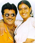Hum Aapke Dil Mein Rehte Hain has nothing new to offer. It's the usual run-of-the-mill story, has the usual sprinkling of drama, comedy, fight, romance and, not to forget, a melodramatic climax. There's a hero, a heroine and a villain, all with the Bharatiya culture plastered all over it. There have been plenty of these kind of films on screen recently. To name a few, Dilwale Dulhaniya Le Jayenge, Pardes and Hero Hindustani. Only one gets to see Kajol in a Sati-Savitri wifey role. And you know that it's often worked too. HADMRH is a remake of a Telugu super-hit, Pavitra Bandham. The story has it that this chap, Vijay Chopra (Anil Kapoor), returns from America with Western views to everything, including marriage. So he wants to marry a girl he would love. Since, Indian parents won't hear of that four-letter word, his father Anupam Kher puts pressure on him to marry a girl of papa's choice. The hero agrees but places one condition -- that he has the choice whether to continue the marriage after a year.